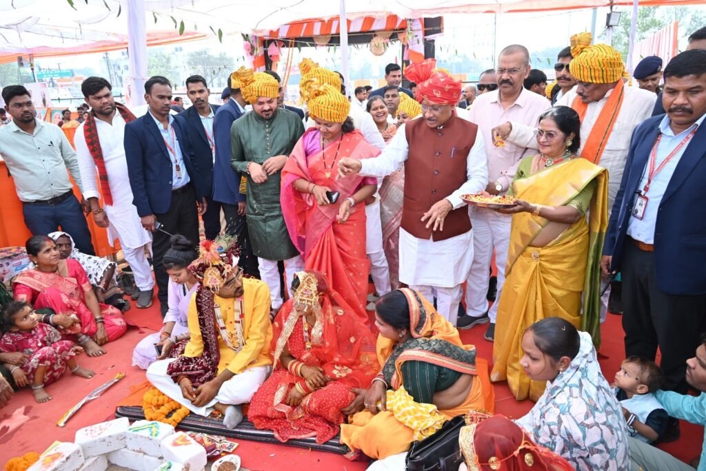 Addressing the gathering, the Chief Minister described the initiative as a symbol of social harmony and “Antyodaya,” noting that couples from Hindu, Muslim, Christian, Buddhist, and Baiga communities solemnised their marriages according to their respective traditions. Each couple received financial assistance of ₹35,000 directly in their bank accounts, alongside gift materials worth ₹15,000 provided by the state government.